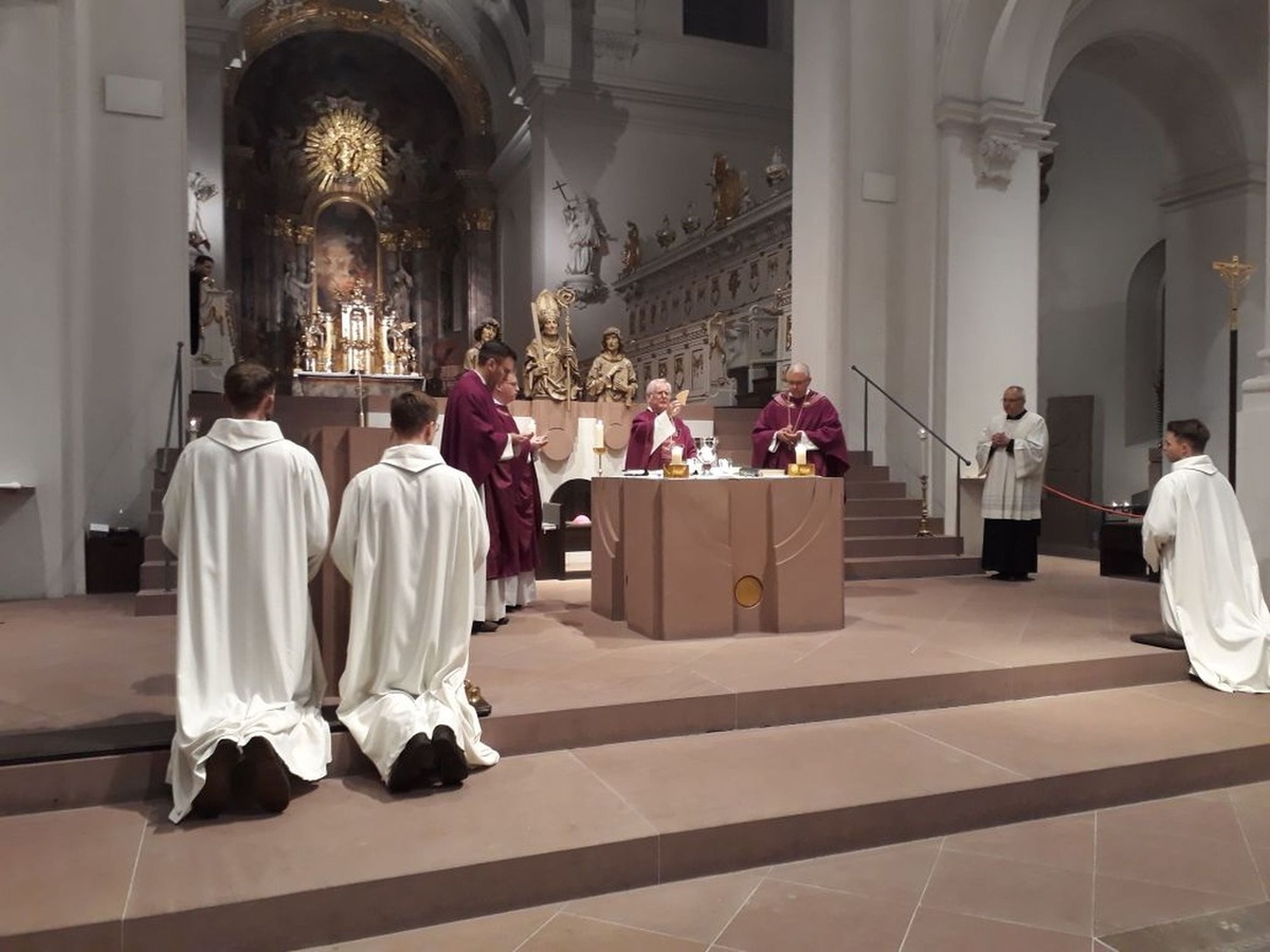 Zugleich wurde dabei der Einrichtung des Würzburger Lehrstuhls für Liturgiewissenschaft an der Katholisch-Theologischen Fakultät der Universität Würzburg vor 50 Jahren gedacht. Der Einladung von Lehrstuhlinhaber Professor Dr. Martin Stuflesser in die Grabeskirche der Frankenapostel waren zahlreiche Angehörige der Fakultät, aktuelle und ehemalige Mitarbeiter, Studierende, Partner, Förderer und Freunde gefolgt. Seit 1967 bildet der Gottesdienst der Kirche einen Schwerpunkt akademischer Forschung und Lehre. „Das Fach Liturgiewissenschaft ist die theologische Disziplin, die auf den Gottesdienst der Kirche reflektiert. In den Blick kommen neben der Geschichte, Theologie und Praxis der vielfältigen liturgischen Feiern auch grundsätzliche Fragen humanwissenschaftlicher Provenienz.“ So verschränkten sich Anthropologie und Theologie in der Beschäftigung mit der Liturgie als Ausdruck des menschlichen Glaubens an den dreifaltigen Gott, erklärte Stuflesser. Erster Inhaber des Würzburger Lehrstuhls für Liturgiewissenschaft war bis zu seinem Tod im Jahr 1987 Professor Dr. Georg Langgärtner. Ihm folgte von 1989 bis zu seiner Pensionierung 1999 Professor Dr. Walter von Arx. Von 2001 bis zu seinem Wechsel an die Universität München im Jahr 2005 war Professor Dr. Winfried Haunerland für das Fach zuständig. In der Vakanz übernahm Professor Dr. Guido Fuchs die liturgiewissenschaftliche Lehre. Seit Oktober 2007 ist Stuflesser Lehrstuhlinhaber.