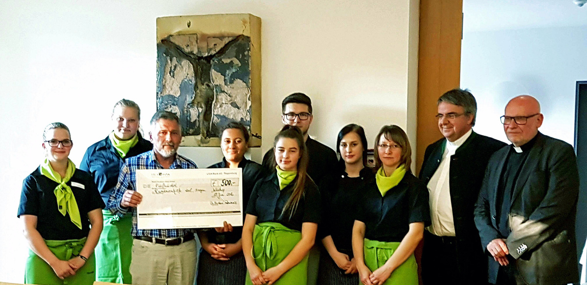 Das Geld stammt aus dem Verkauf von gemeinsamen Bastelaktionen der Azubis, bei denen unter anderem Holzengel entstanden. Der Betrag von rund 300 Euro wurde vom Exerzitienhaus auf 500 Euro aufgerundet. Die Rumänienhilfe Karl unterstützt Menschen in Rumänien seit nunmehr 26 Jahren. In dieser Zeit wurden Hilfsgüter aller Art per Lastwagen in das südosteuropäische Land geschickt. Bisher haben sich 750 Lkw auf den Weg von Dettelbach nach Rumänien gemacht. Die Partner vor Ort sind vor allem kirchliche Stellen und hier insbesondere die Caritas in den Diözesen Alba Iulia, Satu Mare und Temesvar. Diese Hilfe werde weiterhin dringend benötigt, sagte Elmar Karl, Initiator der Hilfsaktion. Trotz des Beitritts Rumäniens zur Europäischen Union im Jahr 2007 seien die Einkommen dort sehr gering. Eine Krankenschwester verdiene im Monat etwa 250 Euro, ein Arzt rund 400 Euro. Die Renten lägen oft unterhalb der 100-Euro-Grenze. Die Lebenshaltungskosten seien aber doch fast genau so hoch wie in Deutschland. Eine Flasche Salatöl koste um die zwei Euro, Kaffee und sonstige Lebensmittel, Treibstoff und Erdgas lägen mindestens auf dem Preisniveau Deutschlands. Zudem hätten viele Organisationen ihre Unterstützung für Rumänien eingestellt, in dem Glauben, dass durch den EU-Beitritt des Landes die gröbsten Probleme beseitigt seien, erklärte Karl. Jeden Dienstag von 17 bis 18 Uhr und jeden Freitag von 15 bis 16 Uhr werden an der Lagerhalle in Dettelbach Hilfsgüter entgegengenommen. Auch Geldspenden sind willkommen. Konto: Katholische Kirchenstiftung Bibergau, IBAN DE75 7919 0000 0600 4504 56, BIC GENODEF1KT1.