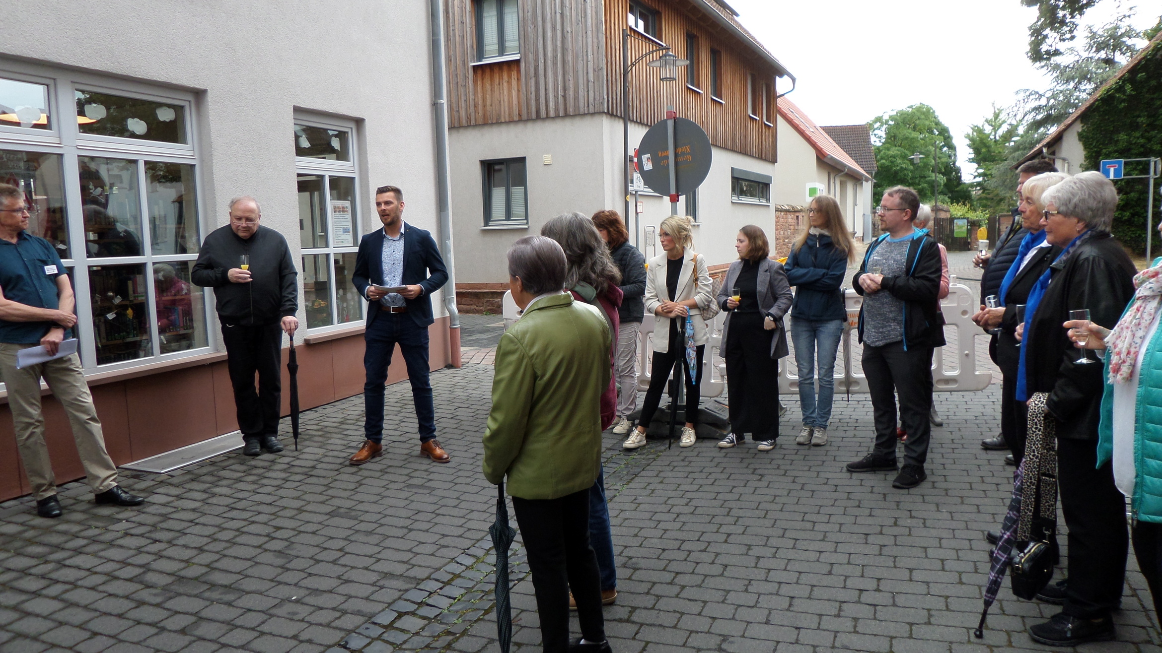 Beim anschließenden Sektempfang würdigten Bürgermeister Ralf Sendelbach und Elias Huisl aus der Büchereifachstelle Würzburg, die Bedeutung von Büchereien als Begegnungsorte für alle, unabhängig von Geschlecht, Konfession, Herkunft oder Bildung. Im Rahmen seiner Ansprache ehrte Herr Huisl mehrere Mitarbeiter*innen für ihre langjährige ehrenamtliche Tätigkeit. Auch etliche Vertreter von benachbarten Büchereien waren gekommen. Sogar die Büchereileitung der Bücherei Ahrweiler war angereist und überbrachte ihre Glückwünsche.