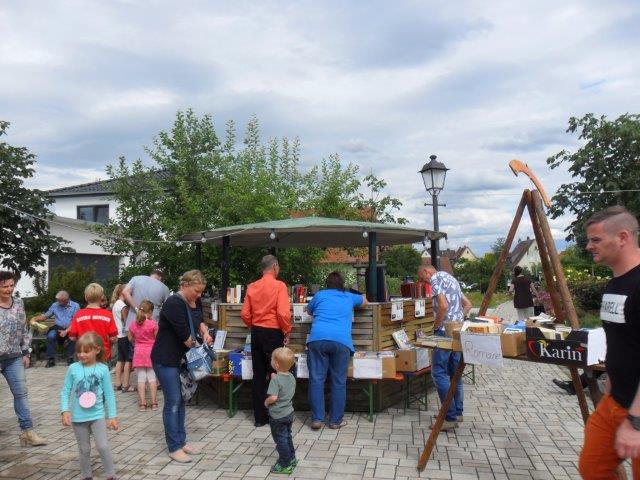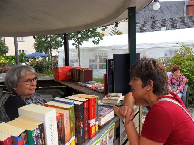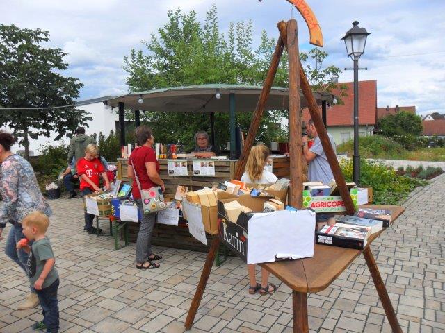 Inmitten des Festbetriebes war ein schöner Holzpavillon der Standort für den Bücherflohmarkt. Er bot viel Platz für die bunte Auswahl an gebrauchten Büchern. Viele Gäste kamen vorbei um in den Bücherkisten zu stöbern, - und auch zum Plausch unter Bücherfreunden!