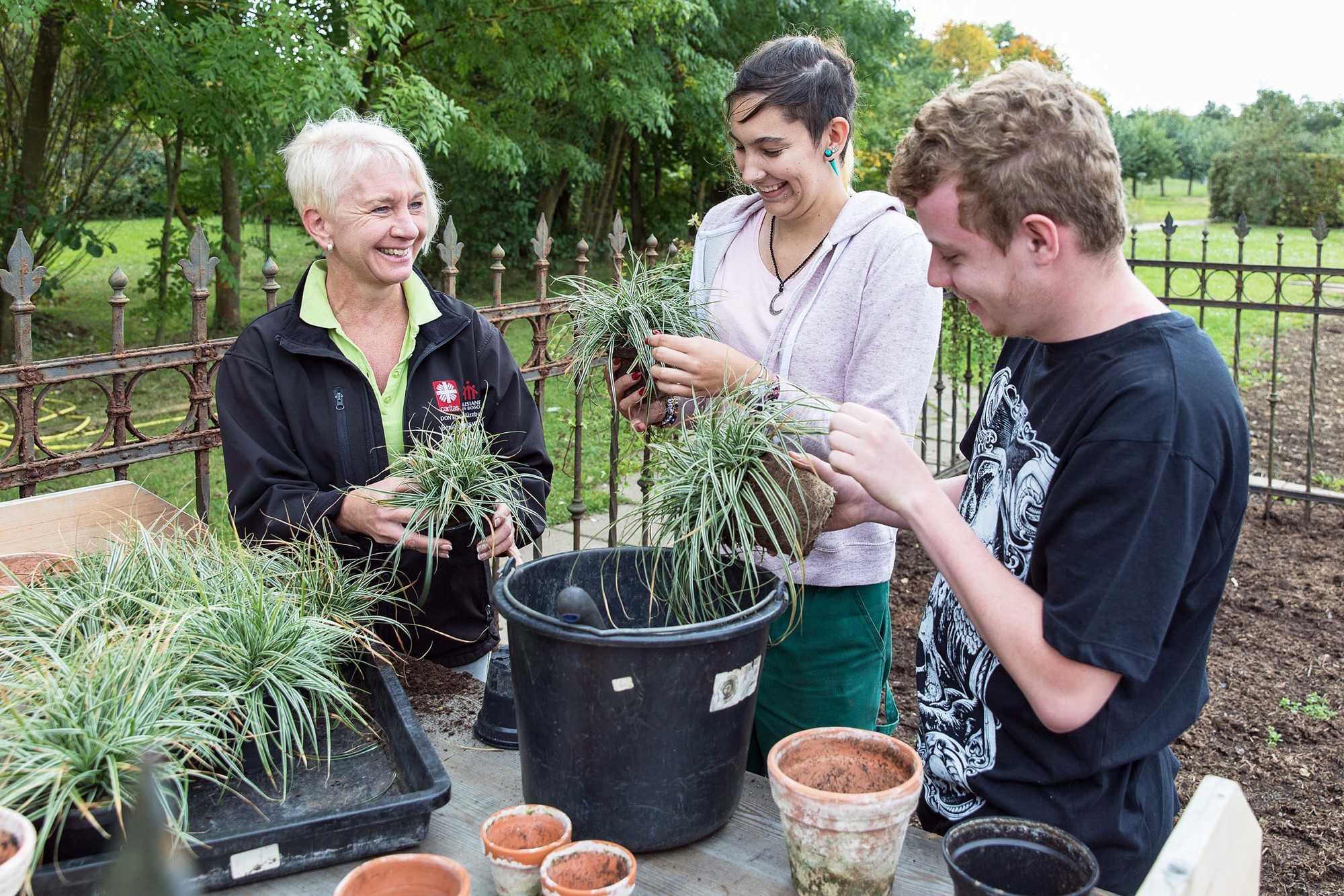 Gadheim (POW) Die Auszubildenden der Fachrichtungen Zierpflanzen- und Landschaftsbau des Bildungszentrums der Caritas-Don Bosco gGmbH haben einen „Garten der Muse“ für die Landesgartenschau 2018 am Würzburger Hubland entworfen. Auf dem Gelände des Sankt Markushofs in Gadheim haben sie ein Modell gebaut. Wenn am 12. April 2018 die Landesgartenschau eröffnet wird, können Tausende von Besuchern im „Garten der Muse“ entspannen. „Unsere Auszubildenden sind das Projekt mit großem Ehrgeiz angegangen“, lobt Ausbilder Rainer Funk.