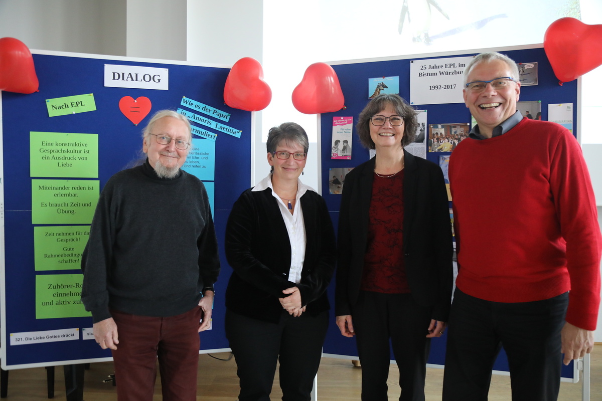 „Von der Liebe und der Kunst, als Paar im Gespräch zu bleiben“: Unter diesem Motto lud der Familienbund der Katholiken (FDK) zur Sitzung des Diözesanfamilienrates ein und feierte am 11. November ein großes Jubiläum. Denn seit 25 Jahren bietet der FDK ganz besondere Gesprächstrainingskurse für Paare an. „Ein Partnerschaftliches Lernprogramm“ - kurz EPL - oder „Erlebnis, Partnerschaft, Liebe“, denn das sind die Kernpunkte, die Säulen dieser Partnerschaftlichen Lernprogramme, die Paare helfen sollen, (wieder) miteinander zu kommunizieren. Die Präventionsprogramme wurden vom Institut für Forschung und Ausbildung in Kommunikationstherapie von Joachim Engl und Franz Thurmaier in München entwickelt. Seit den ersten Kursen in Würzburg, die der FDK 1992 anbot, konnten 1.500 Paare am EPL-Kommunikationstraining teilnehmen. Mit vielen Anekdoten und anregenden Einblicken in den Höhen und Tiefen jeder Partnerschaft galt es nun, dieses Jubiläum im Rahmen der FDK-Diözesansitzung gebührend zu feiern.