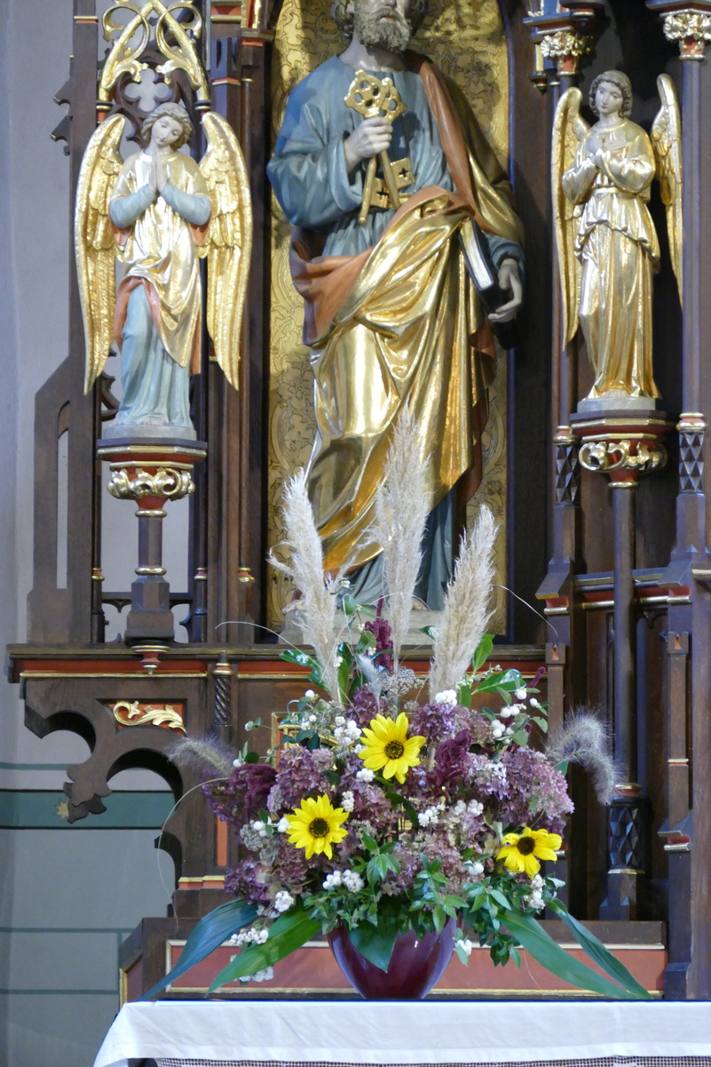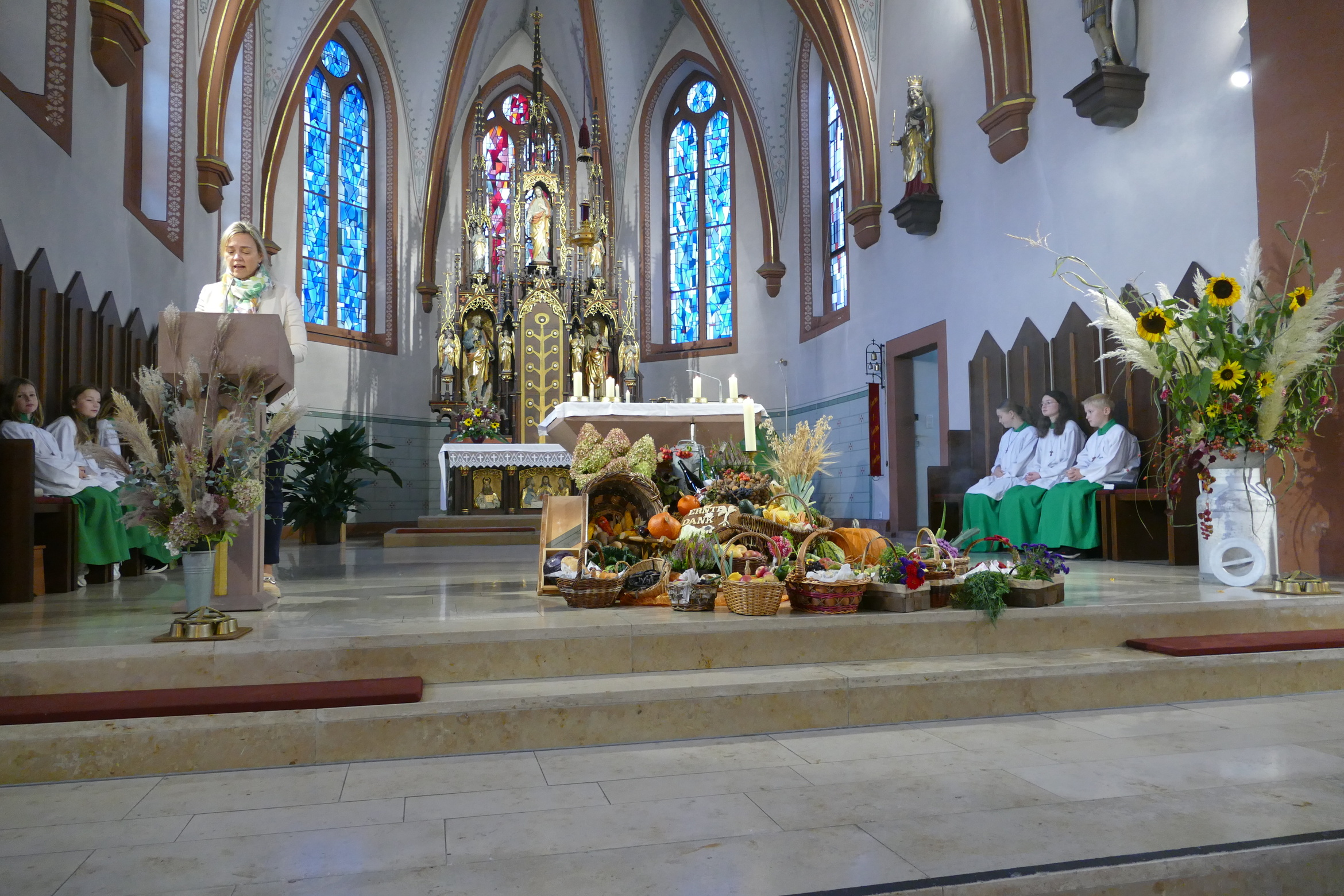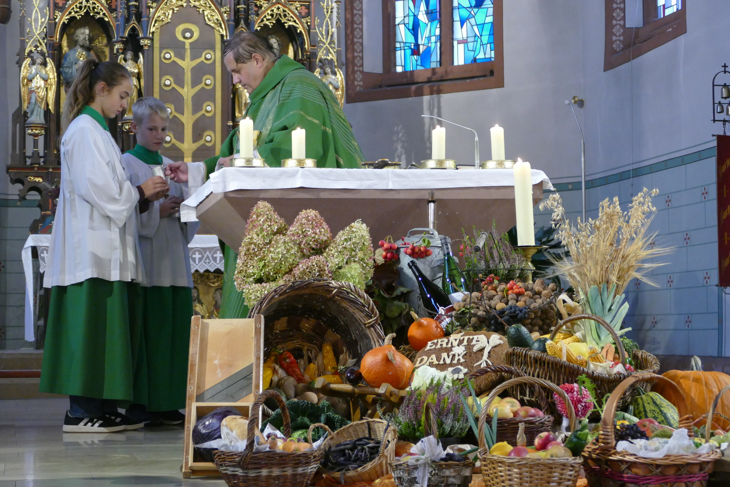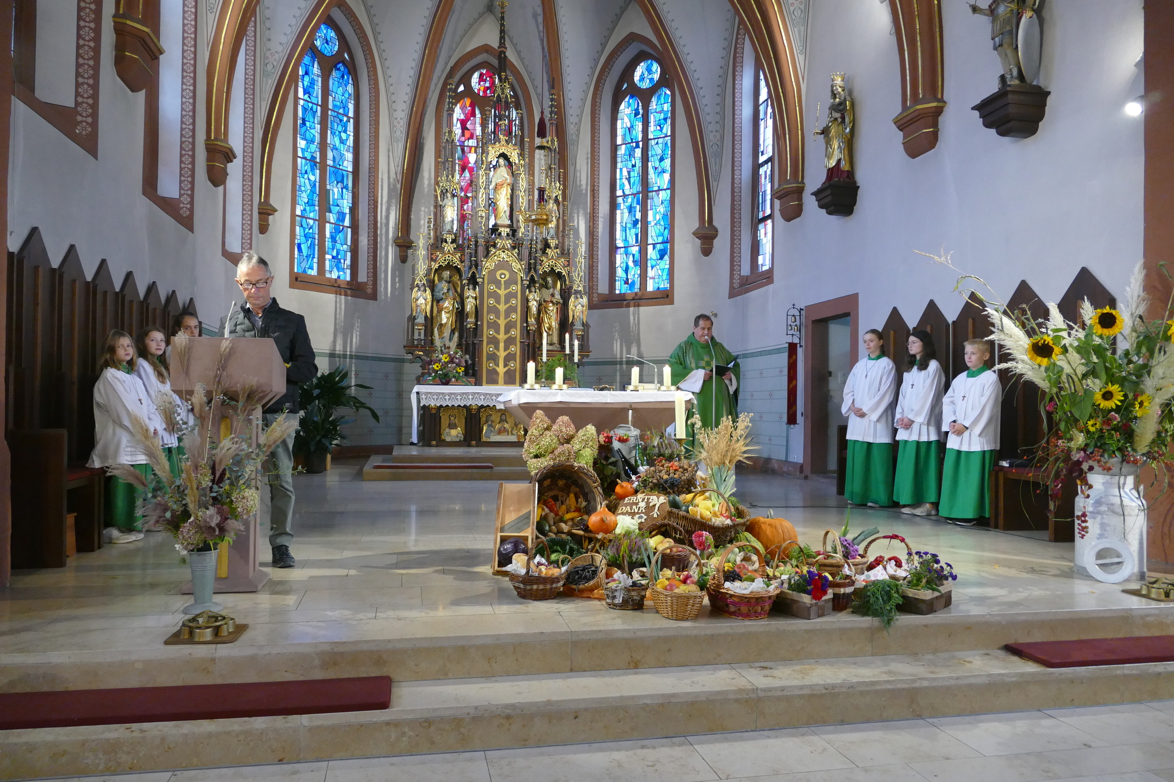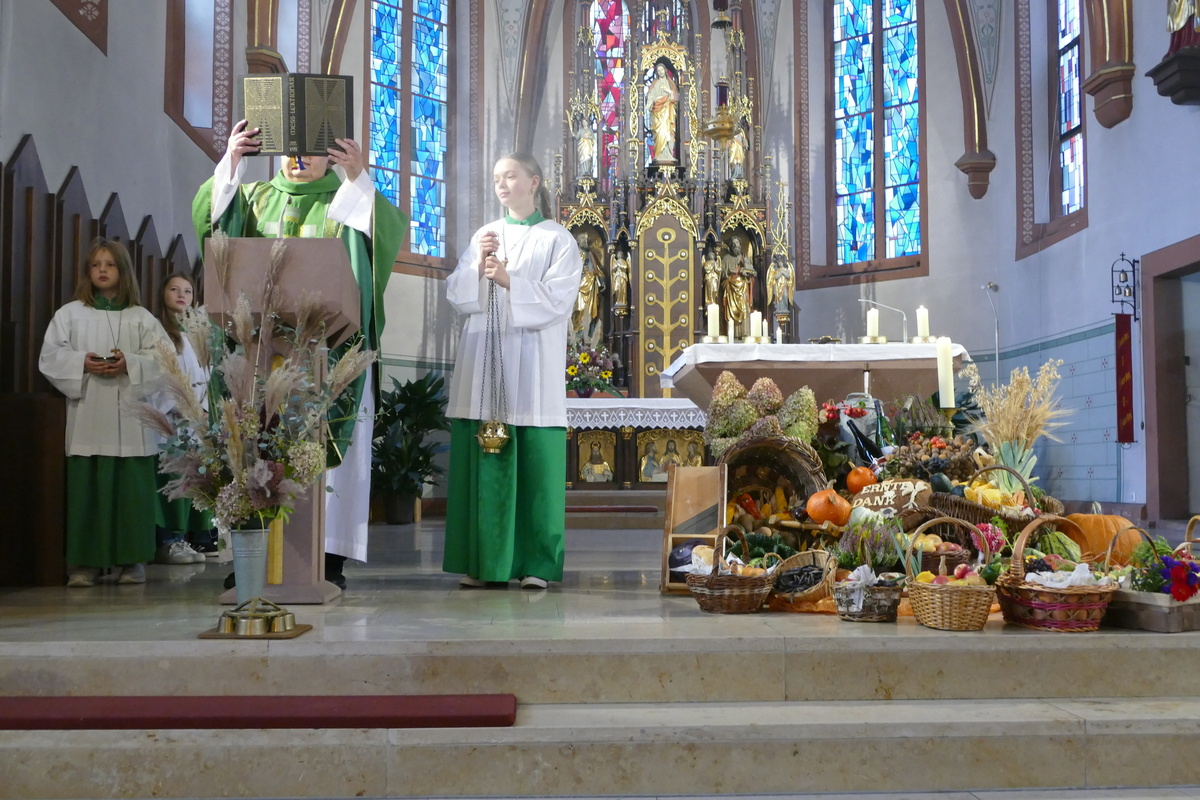 Zu Beginn des Gottesdienstes segnete Pfarrer Wöber den prächtigen Erntedankaltar und die mitgebrachten Erntegaben.