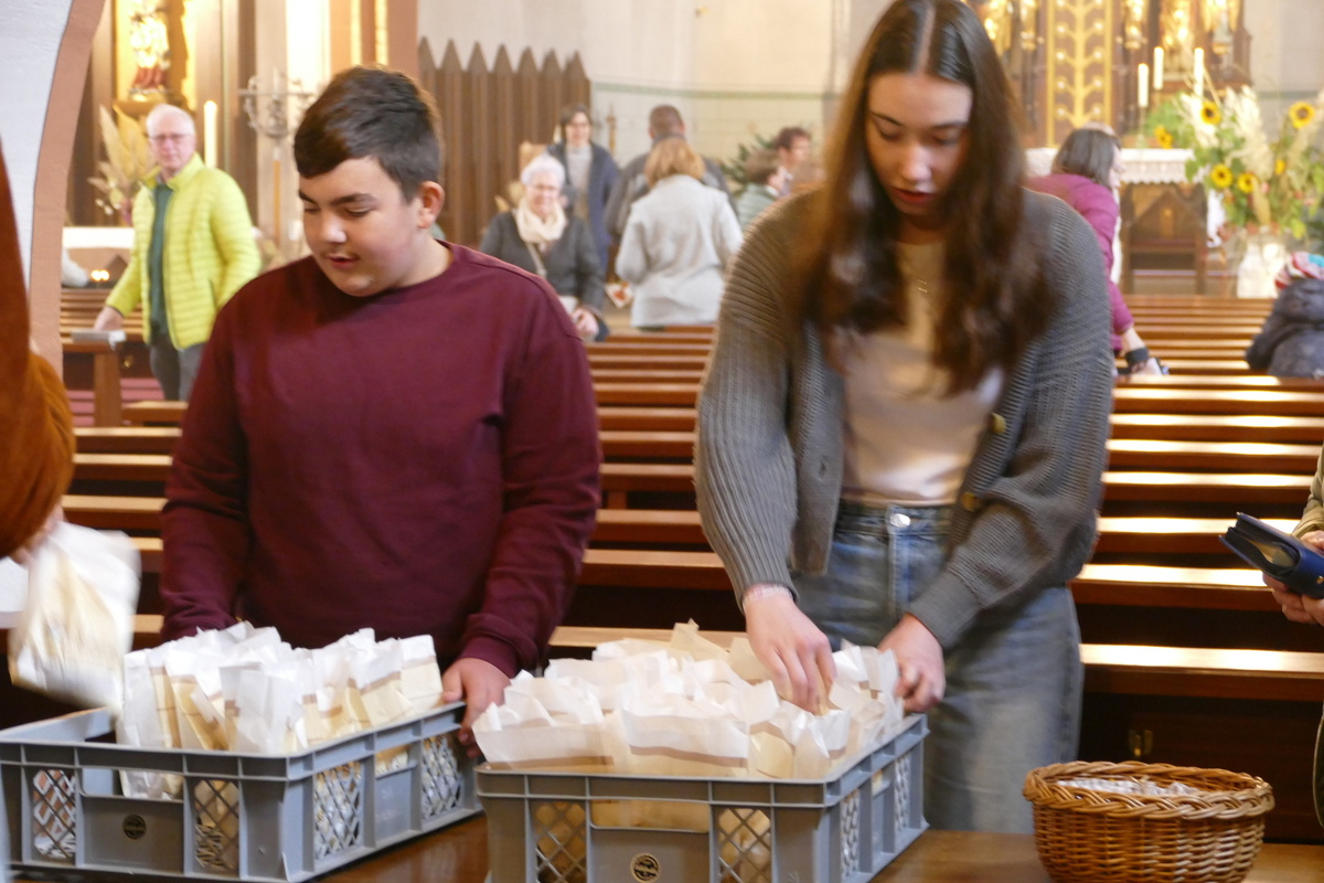 Am Ende des Gottesdienstes wurden die Minibrote gesegnet, die gegen eine Spende für den Martinsladen an die Gottesdienstbesucher abgegeben wurden.