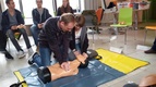 Christian Kamm erklärte ausführlich die sog.“Lebensrettenden Sofortmaßnahmen“ anhand vieler anschaulicher Fallbeispiele. So durfte jeder u.a. die „Wiederbelebungsmaßnahme“ nach einem Herzstillstand an einer HLW-Übungspuppe probieren. Hier erläuterte er auch sehr genau den Unterschied zwischen einer Wiederbelebung bei Erwachsenen und Kinder/Säuglingen.