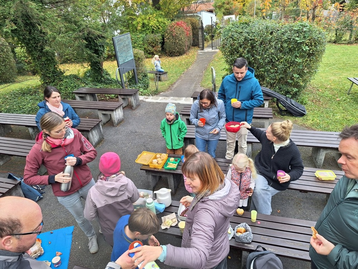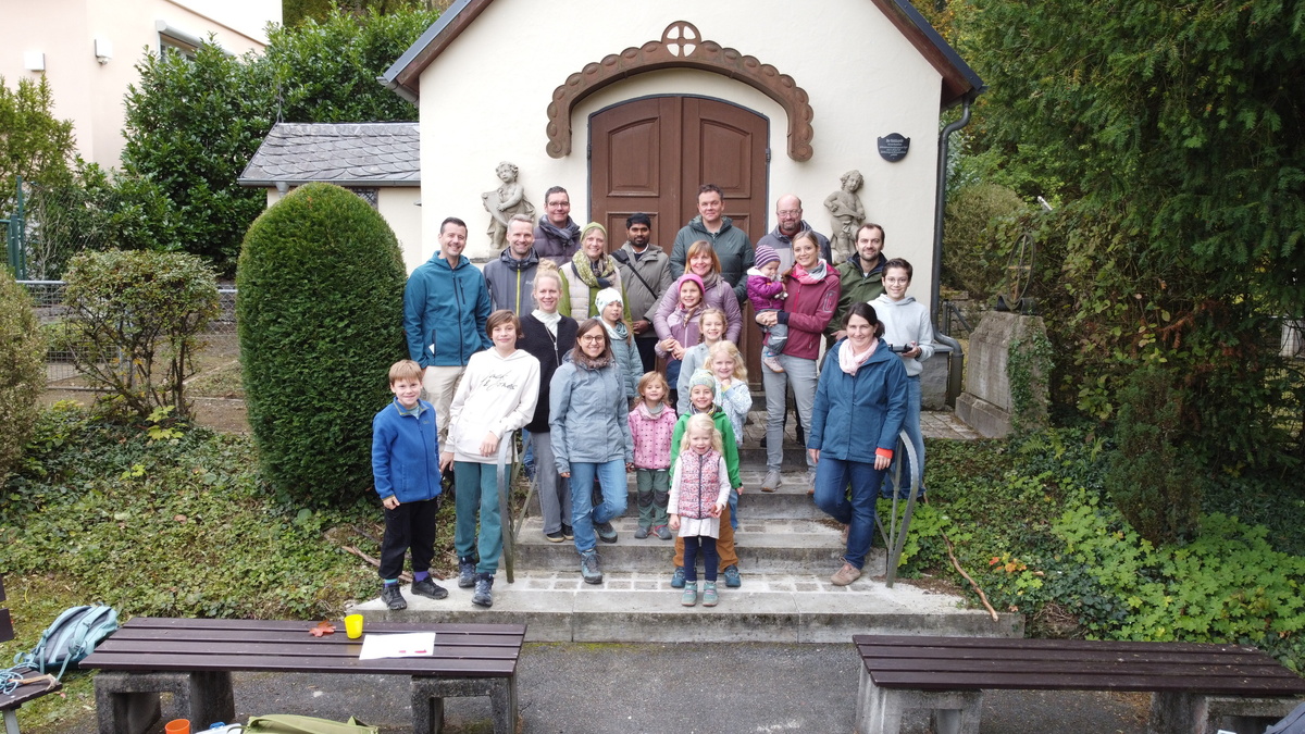In diesem Jahr startete die Familien-Wanderung im Hinteren Steinbachtal. Auf dem Weg begleitete uns die Kirchenmaus Ulfi und alle Kinder sammelten mit ihr fleißig Vorräte und Baumaterial für das Winter-Mäuse-Quartier.
