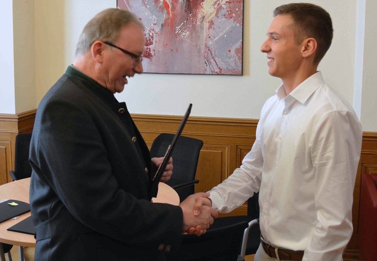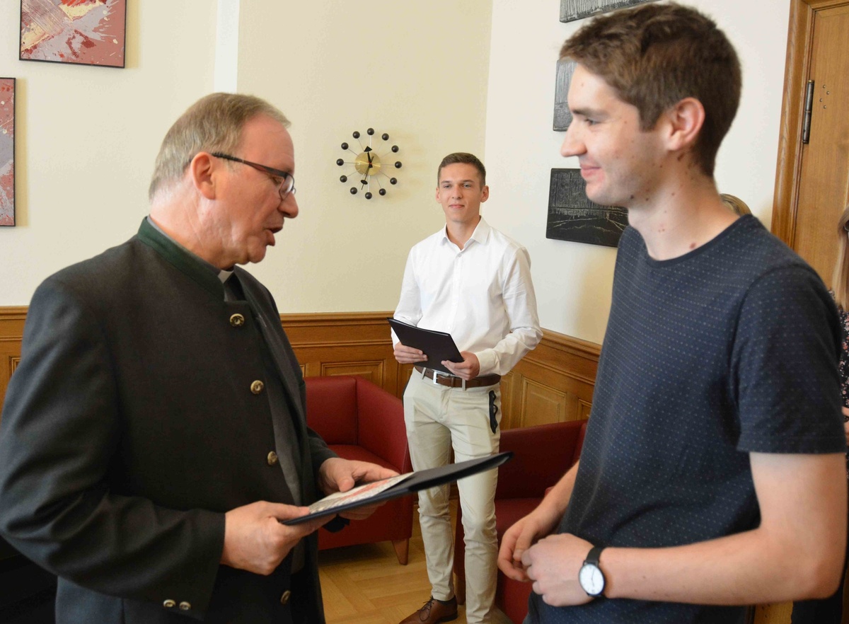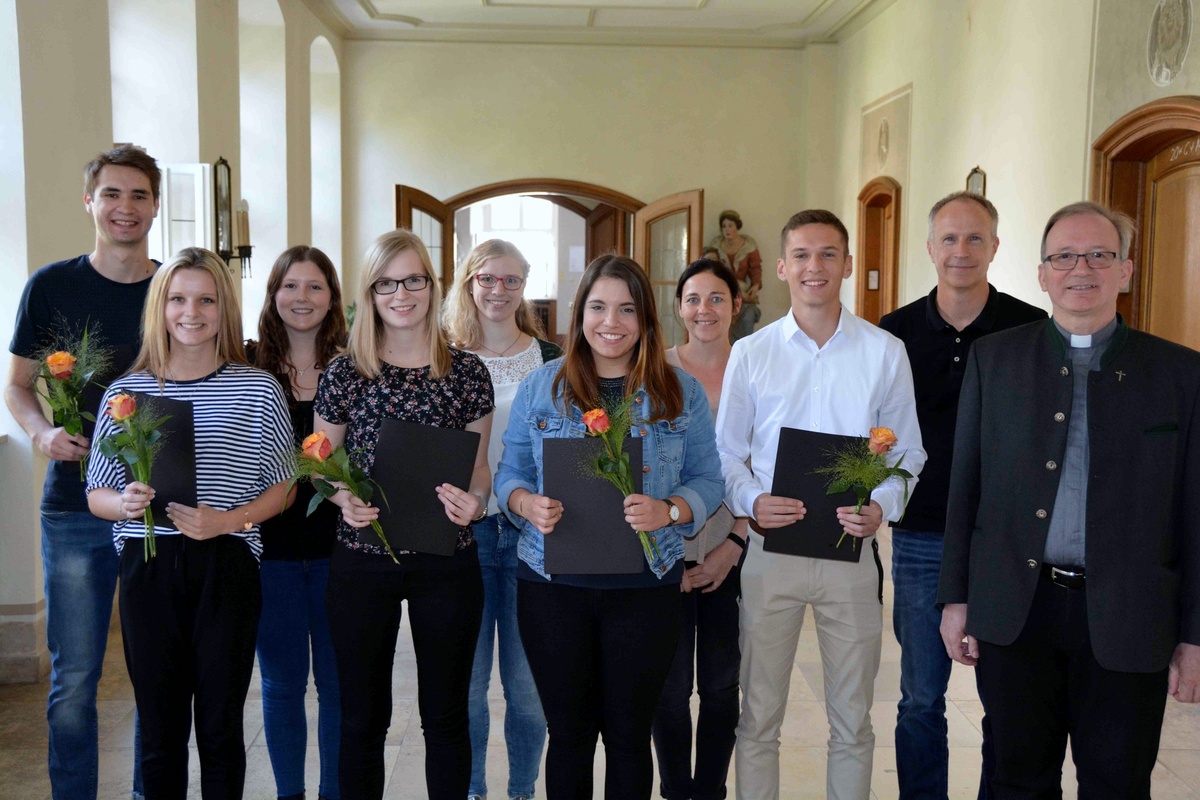 Im Bischöflichen Ordinariat überreichte er den ehemaligen Auszubildenden der Diözese – Annika Kempf aus Helmstadt, Sabrina Köpplinger aus Karlstadt, Leonie Müller aus Hettstadt, Leon Kernwein aus Kleinochsenfurt (alle Büromanagement) und Jonatan Sitter aus Würzburg (Fachinformatiker) – jeweils das betriebliche Ausbildungszeugnis. Die Ausbilder Stefanie Kremling und Jürgen Derr sowie die Jugendvertreterinnen Sophia Karl und Anna Maderholz von der Mitarbeitervertretung (MAV) des Bischöflichen Ordinariats überbrachten ebenfalls ihre Glückwünsche. Vier der ehemaligen Auszubildenden haben eine Anstellung bei der Diözese erhalten. Kernwein, der seine Ausbildung als Klassenbester abschloss, wird ab dem Wintersemester Geschichte und Ethnologie studieren.