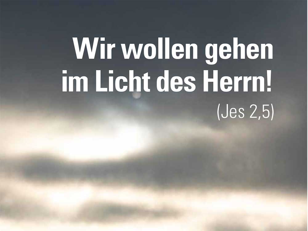 Das Motto «Wir wollen gehen im Lichte des Herrn!» ist der Prophetie des Jesaja entnommen, die uns durch die Adventssonntage und die Weihnachtsgottesdienste begleitet.