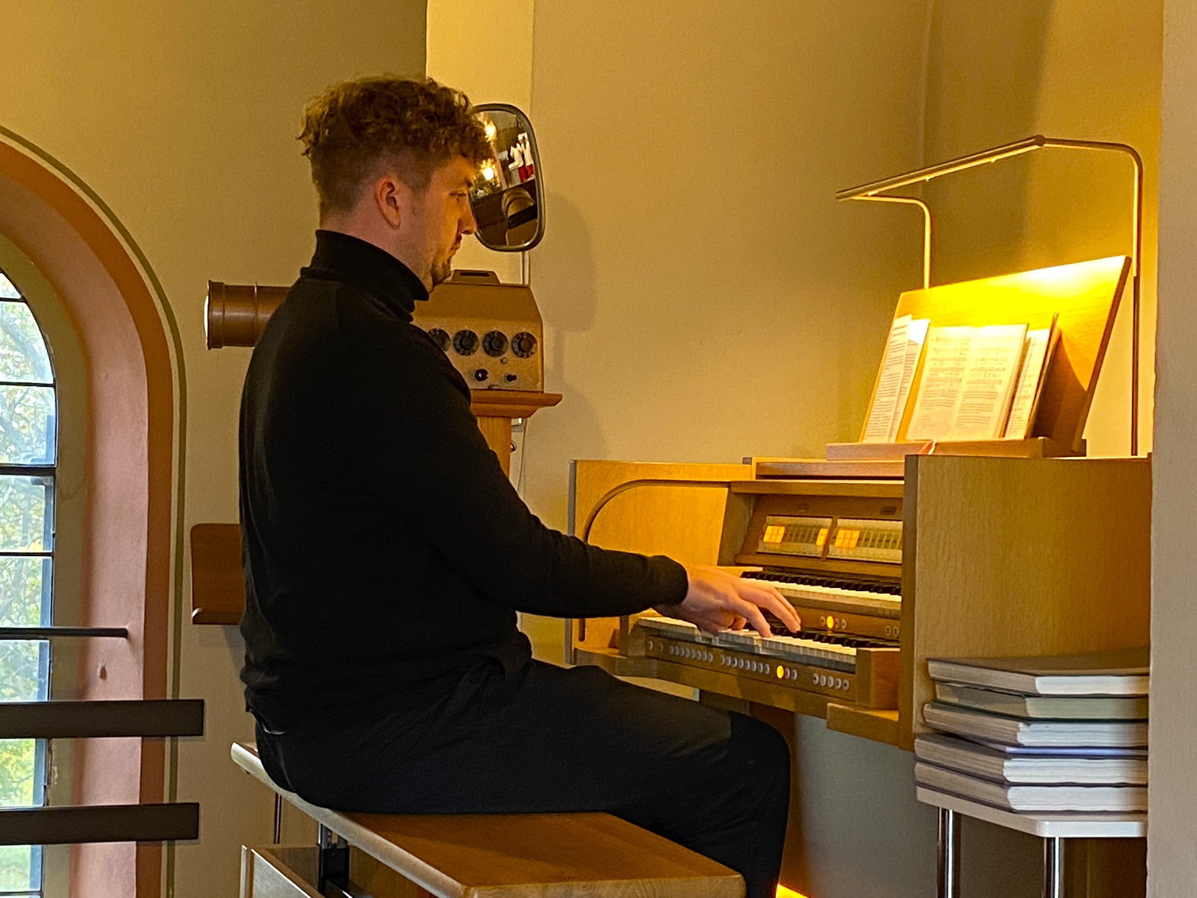 Die zweite Andacht leitete Diakon Franz Mahlmeister, wobei Jakob Keller die Orgel spielte. Thema waren die Trostreichen Geheimnisse des Rosenkranzes.