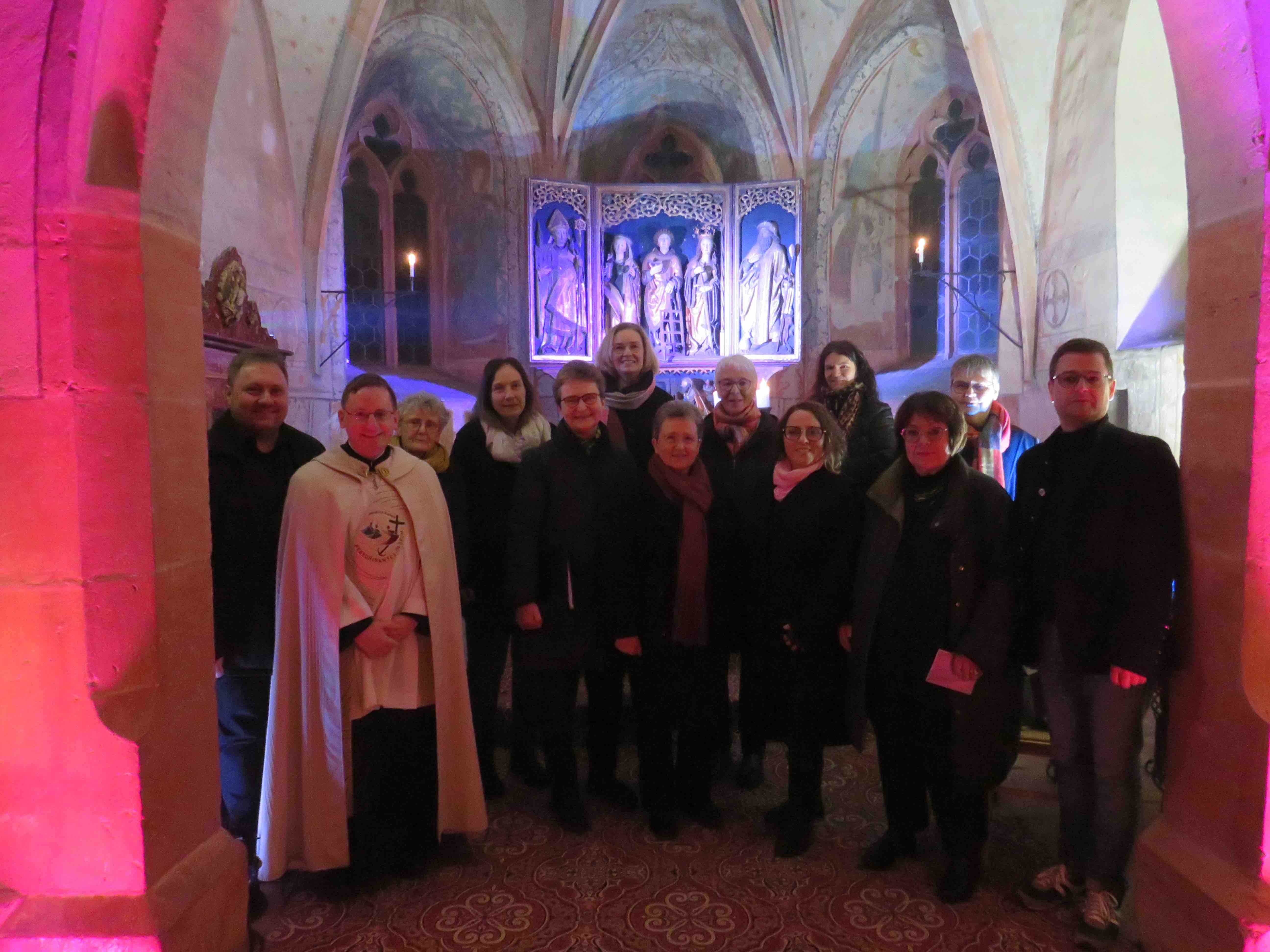 Pfarrer Jan Kölbel sprach der Schola Cantorum, Michael Bailer und Markus Heinrich im Namen der Pfarrgemeinde ein herzliches „Vergelts Gott“ für die musikalische Bereicherung der Gottesdienste aus und brachte seine Hoffnung auf noch viele weitere Jahre zum Ausdruck. Die Sängerinnen sind: Monika Althen, Susanne Arnold, Manuela Fries, Adelheid Kempf, Monika Kern*, Angelika Knapp*, Margarete Schmalbach*, Bärbel Schneider*, Angelika Stanior und Bärbel Zeitner (*von Anfang an dabei).