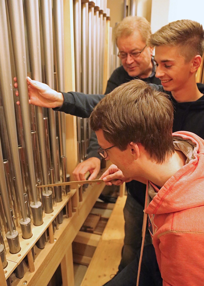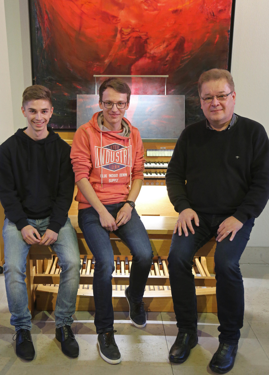 Netrvals Begeisterung für das Orgelspielen liege in seiner Familie: Sowohl seine Mutter als auch sein Onkel seien Organisten. Früher habe Netrval schon einige Jahre Klavierunterricht genommen und später im Jugendchor seiner Pfarrgemeinde mitgesungen. „Als ich älter wurde, wurde ich an das Klavier gesetzt, um den Chor zu begleiten“, erzählt er. Der dortige Organist habe Netrval spielen gehört und ihn ermutigt, das Orgelspielen zu lernen. Seit Anfang 2017 nimmt der Abiturient nun Orgelunterricht bei Frede. „Er ist in sechs Stunden doppelt so weit gekommen wie andere in der Zeit“, sagt der Diözesanmusikdirektor stolz. „Mit mehr Spaß und Begeisterung lernt es sich schneller und besser.“ Nachdem er in letzter Zeit kürzer getreten ist, um sich auf sein Abitur vorzubereiten, will Netrval nun wieder an seine anfänglich großen Fortschritte anknüpfen und in seiner Heimatpfarrei den Gottesdienst an der Orgel begleiten. Beruflich allerdings hat er andere Pläne: „Ich möchte Schlagzeug im Hauptfach an einer Musikhochschule studieren. Man kann da schon Parallelen zur Orgel herstellen: Bei beiden Instrumenten mache ich mit Händen und Füßen gleichzeitig Musik.“