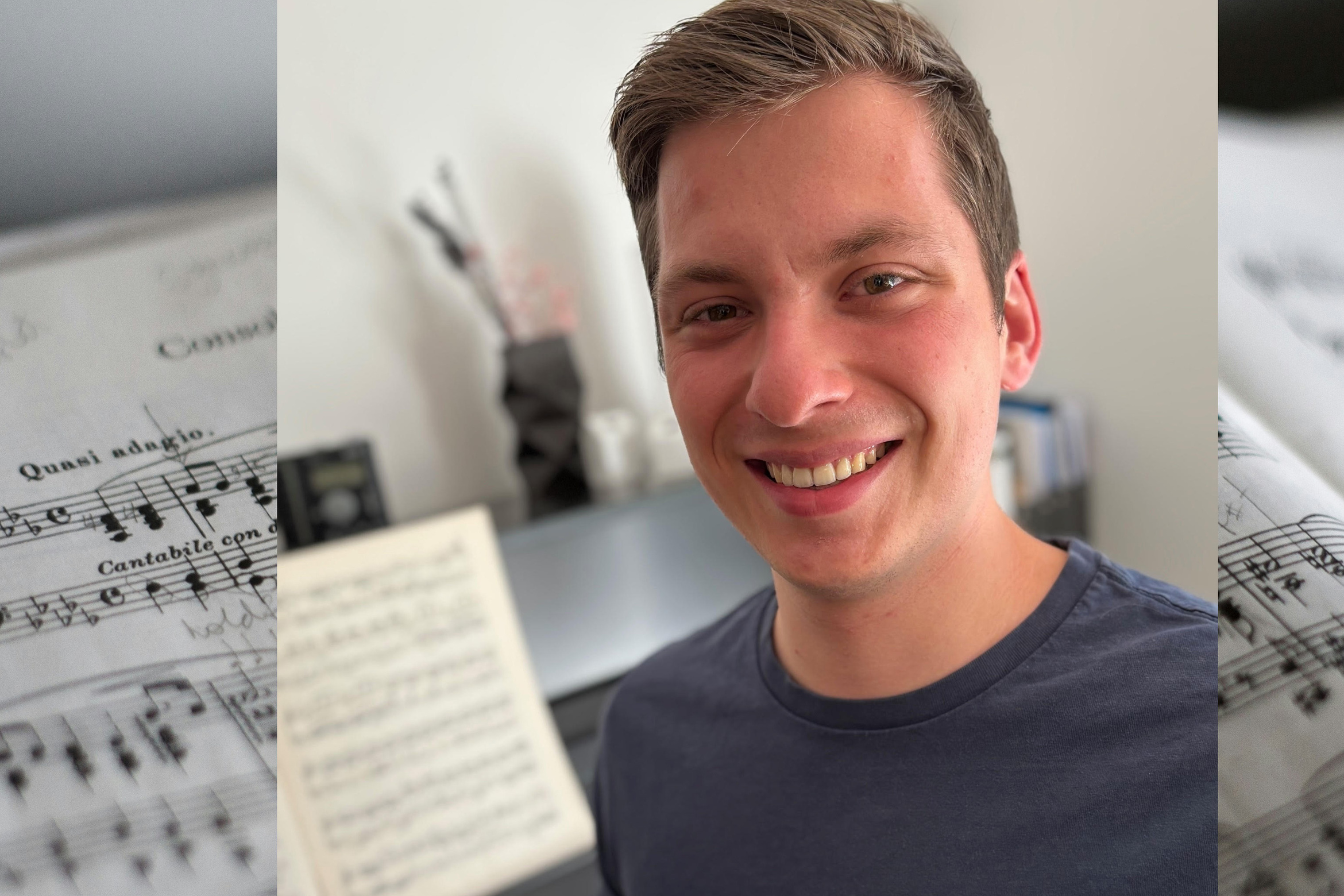 Nach meinem Abitur in Coburg habe ich zwei Jahre in Bad Königshofen gelebt, also ist mir Unterfranken schon vertraut. Ich war dort an der Berufsfachschule für Musik zur Ausbildung zum Staatlich geprüften Ensembleleiter und studiere nun Schulmusik für Gymnasium an der Musikhochschule in Würzburg. Ein Traum, der endlich in Erfüllung geht! Ich bin gerade frisch in die Sanderau gezogen. Für die Chorarbeit in Lengfeld habe ich sehr hilfsbereite Chormitglieder, die mich zu den Proben nach Lengfeld mitnehmen.