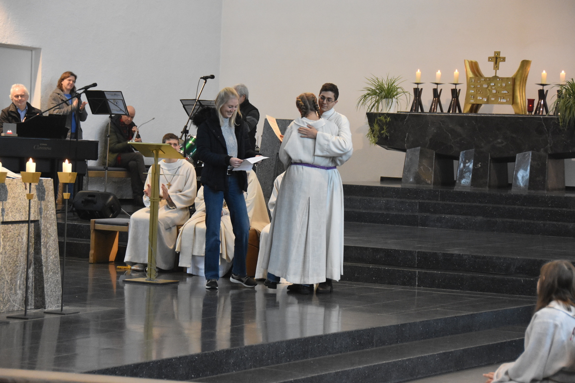 Ein weiterer besonderer Moment war die Ehrung von Marie Pfenning, die seit zehn Jahren Teil der Ministranten ist und inzwischen sogar drei Gruppen leitet. Wir freuen uns sehr über ihr langjähriges Engagement und ihren großartigen Einsatz!