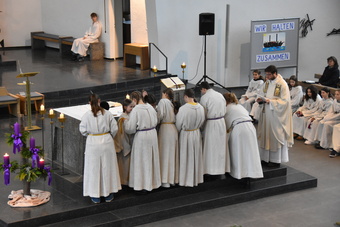 In St. Nikolaus Gerbrunn durften wir in diesem Jahr sechs neue Ministrantinnen begrüßen. Wir haben uns sehr darüber gefreut, die Mädchen auf ihrem Weg in die Ministrantengemeinschaft begleiten zu dürfen.