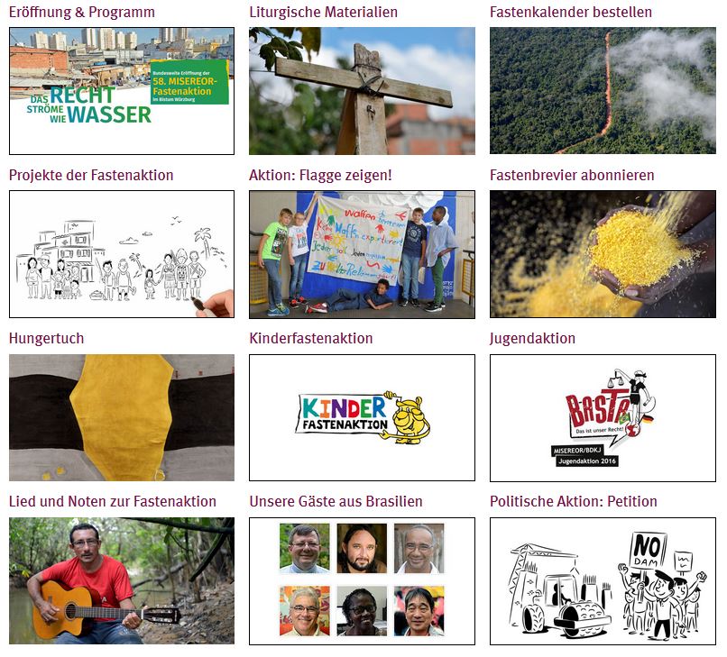 Das ist die MISEREOR-Fastenaktion. Sie beginnt stets am Aschermittwoch und endet an Ostern. Im Mittelpunkt der Fastenaktion steht jedes Jahr ein Land mit einem bestimmten Schwerpunkt: In diesem Jahr Brasilien und die Sorge für das Recht, für Gerechtigkeit und Menschenwürde.