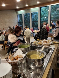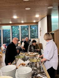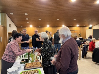 Zum dritten Mal haben wir Weinfest in St. Pius gefeiert. Nach dem Vorabend-Gottesdienst zum Erntedank in der St.-Pius-Kirche, den Pfarrer Robert Sauer gemeinsam mit Diakon Alois Kern zelebrierte, ging es in den benachbarten Pfarrsaal. Dort hatte das engagierte Helferteam bereits alles vorbereitet: Es gab mehrere Sorten Wein, dazu alkoholfreie Getränke, selbstgebackenen Zwiebelkuchen, Käsestangen, hausgemachten Kochkäse und zwei leckere selbstgekochte Suppen sowie zum Nachtisch selbstgebackene Kuchen und Kaffee. Eine schöne Gelegenheit, sich wieder einmal zu begegnen und auszutauschen.