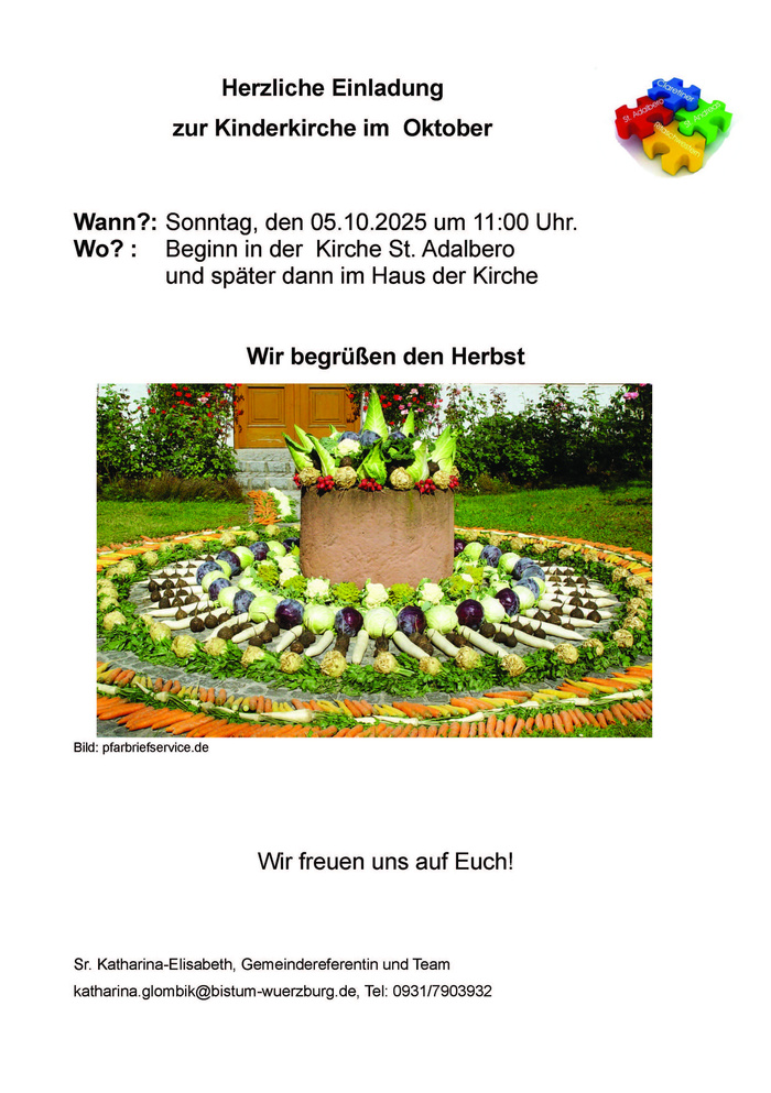 Wir laden alle Kinder ein am Sonntag, 05.10.2025 um 11:00 Uhr mit uns Kinderkirche zu feiern.