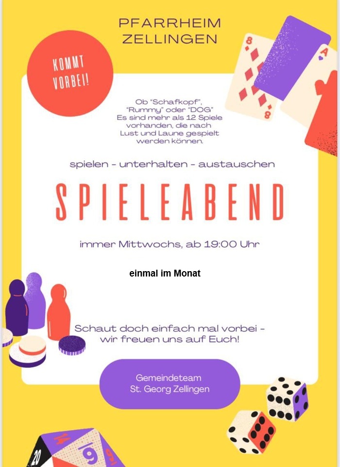 Offener Spieleabend im Pfarrheim Zellingen (10.6.)